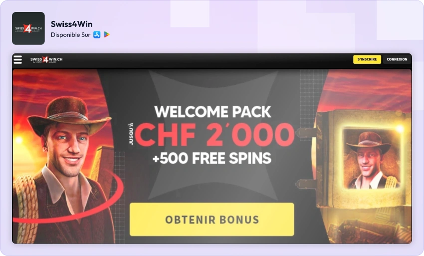 Pour rédiger cet avis Swiss4Win, nous avons testé plusieurs de ses 1’800 jeux, son bonus de bienvenue jusqu’à CHF 2’000, son application mobile, et son service client en direct.