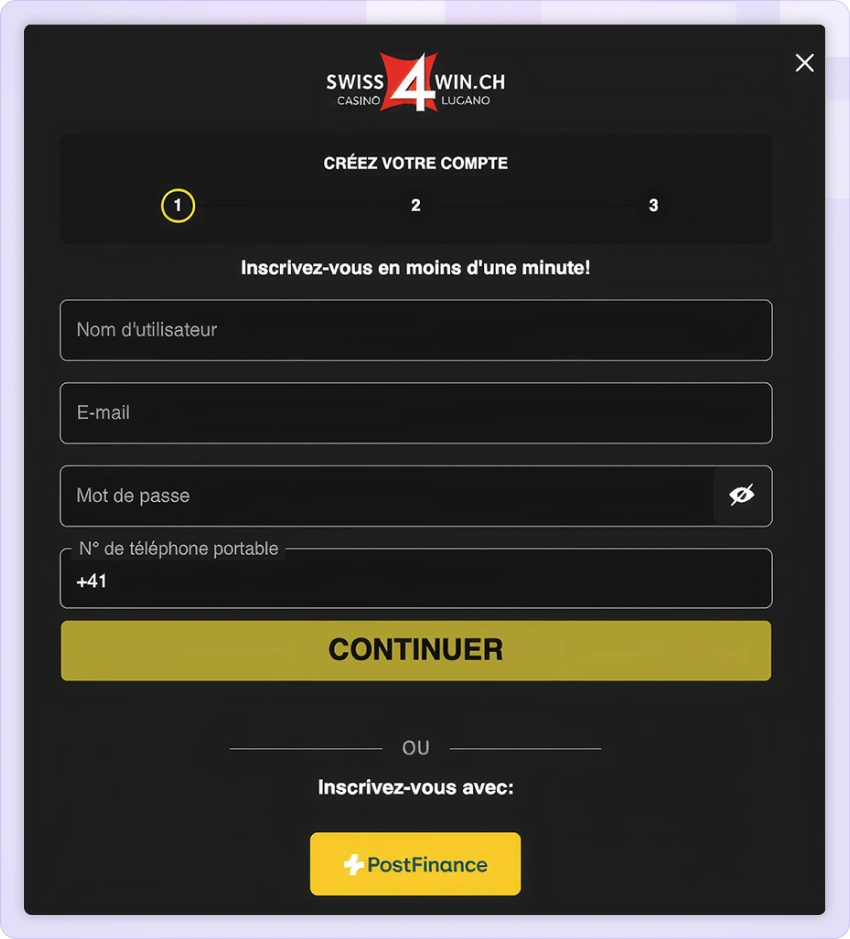 L’inscription sur Swiss4Win prend moins d’une minute :
